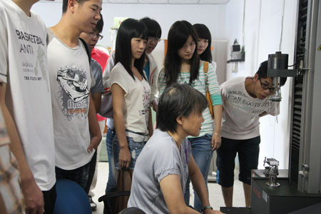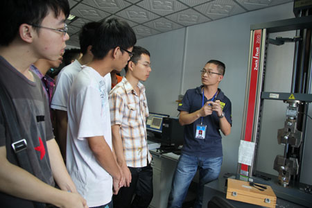 在实验室现场,师生们在院工程师的带领下进行实地参观、观摩交流,了解塑胶与化工产品检验所进行产品质量检测的种类、范围、检测能力、仪器设备等情况,并与现场的技术人员热切交流。