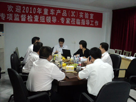 9月14 -15日,国家认监委委派三位专家组成专家组对我院机械(玩具)产品检验部进行了童车产品(3C)实验室专项监督检查。主要的检查内容包含现场目击试验(盲样)、CCC报告编制、样品管理、检验收费及部分质量管理程序等方面。