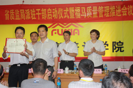 欢迎仪式以“省质监局派驻干部启动仪式暨福马质量管理推进会议”为主题,集团董事长主持仪式并致欢迎词,感谢省质监局送技术人员到企业,为企业办实事、办好事。我院吴振东副书记在仪式上发言表示,感谢企业为年轻干部的成长提供一个综合性的学习锤炼平台,表示我院挂职干部将以企业为家,全身心融入到企业的日常工作中,以自己的专业素养和技术能力,协助企业取得质量和管理水平上的提升。